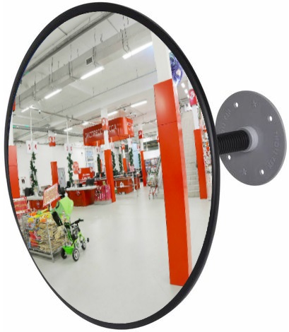 Зеркало для помещений круглое на гибком кронштейне 600 мм. Используются в помещениях и торговых залах с множеством поворотов, также на кассе в магазинах. Поставляется на гибком кронштейне со всеми крепежными материалами, которые позволяет закрепить зеркало в любой плоскости.