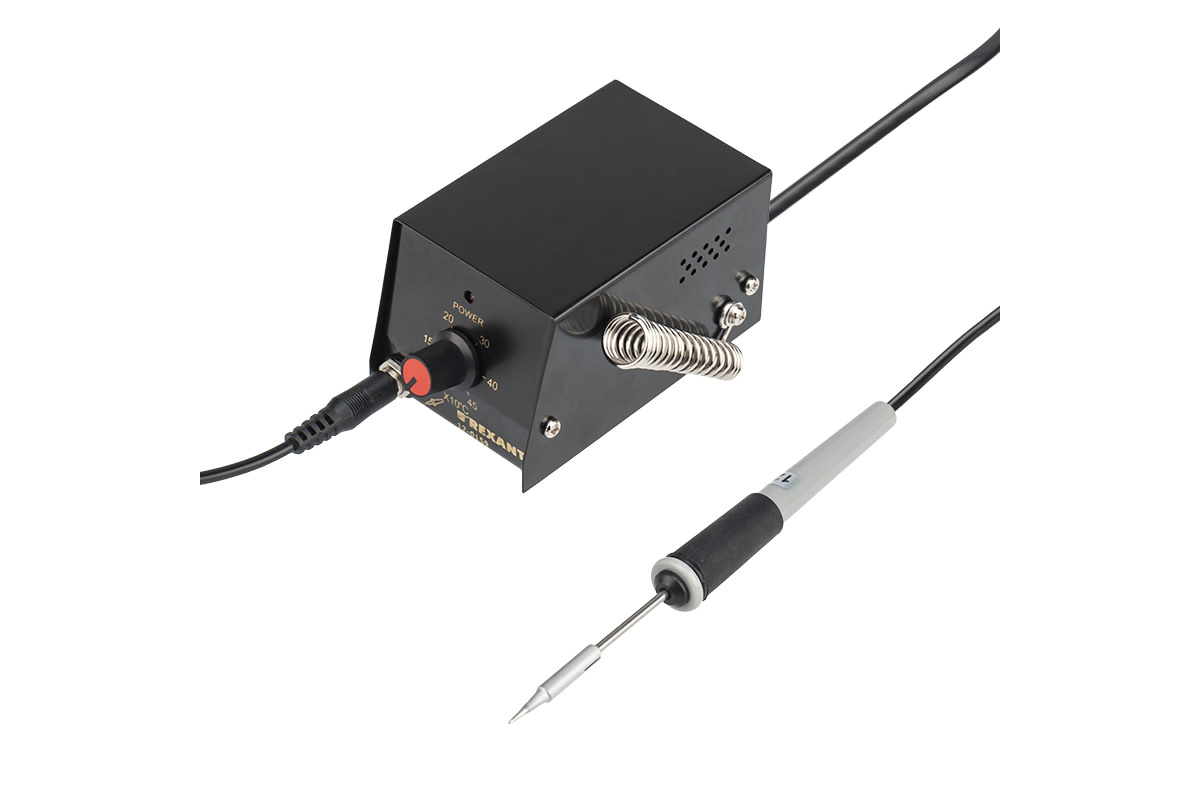 Паяльная станция (мини) REXANT предназначена для ручного монтажа радиоэлементов. Имеет сверхкомпактный дизайн. Её можно использовать как в домашних условиях, так и в профессиональных лабораториях. Температурный диапазон нагрева 100...450 °С, регулируется с помощью механического потенциометра.