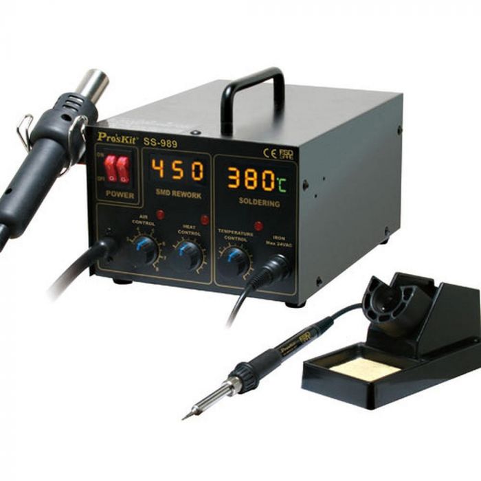 Паяльная станция Pro'sKit SS-989B паяльник 60Вт, фен 24л/мин, LED-индикация, антистат. защита)