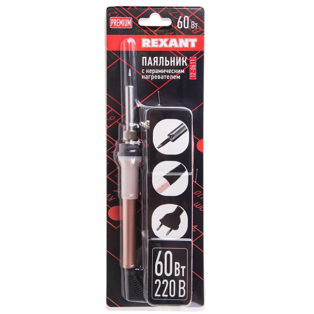 Паяльник электрический 60Вт Rexant с керамическим нагревателем, 220 В Rexant — купить по цене от 1 200 ₽ | ПрофБезопасность