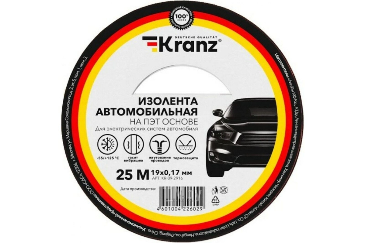 Изолента Kranz ПВХ 0.17х19мм 25м автомобильная черный KRANZ — купить по цене от 350 ₽ | ПрофБезопасность