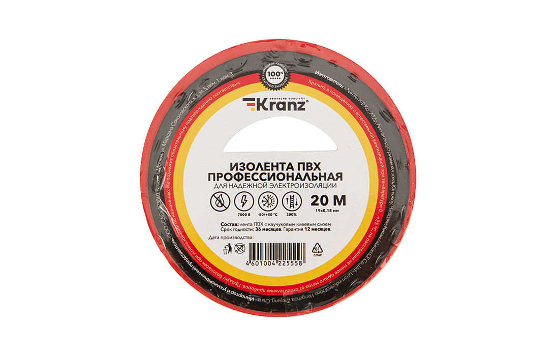 Изолента Kranz ПВХ профессиональная 0.18х19мм 20м красный KRANZ — купить по цене от 115 ₽ | ПрофБезопасность