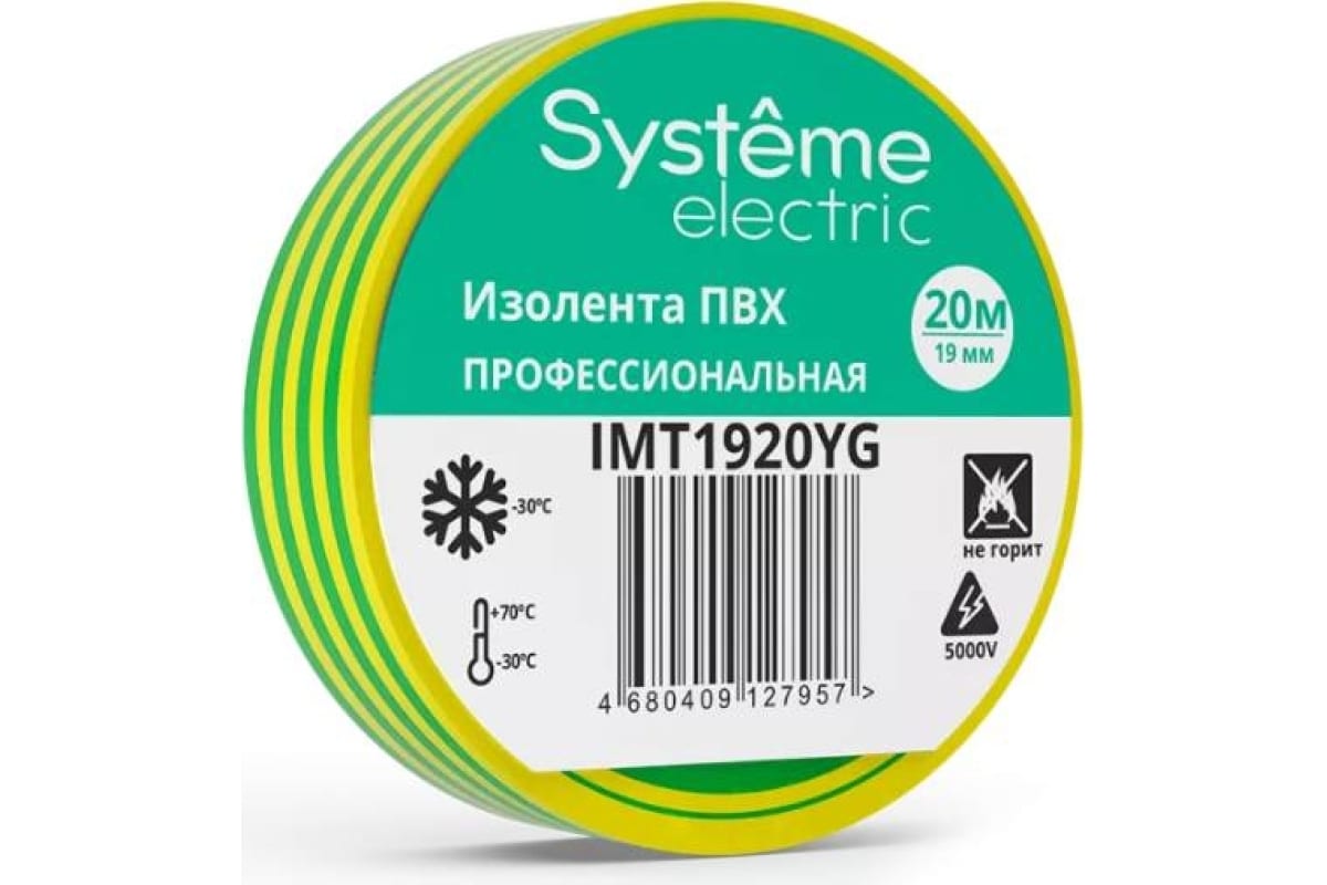 Изолента Systeme Electric ПВХ 19мм х 20м желто-зеленый IMT1920YG Systeme Electric — купить по цене от 110 ₽ | ПрофБезопасность