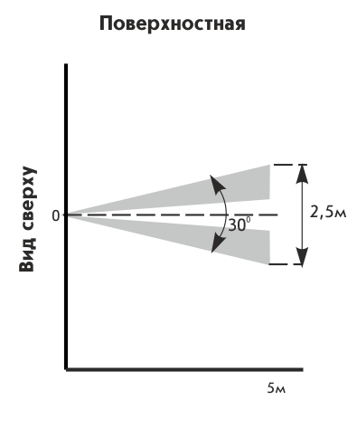 - Угол зоны обнаружения в горизонтальной плоскости: 30°