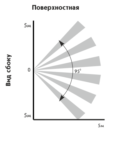 - Угол зоны обнаружения в вертикальной плоскости : 95°