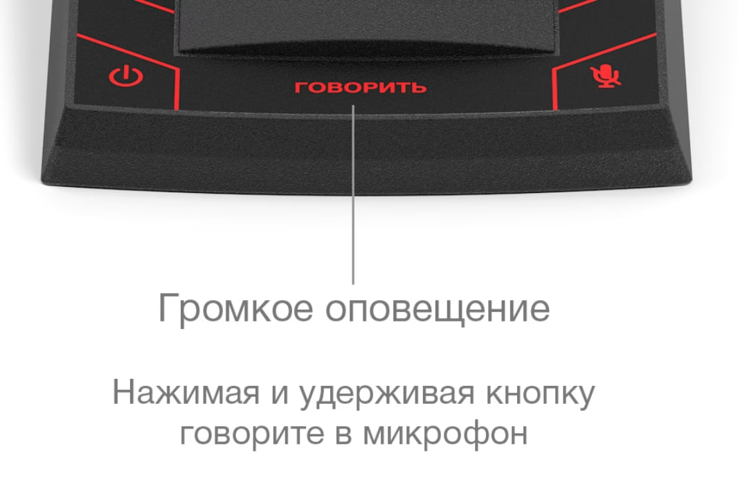 Управление функцией громкого оповещения осуществляется нажатием и удержанием кнопки «ГОВОРИТЬ», удобно расположенной на передней части пульта оператора.