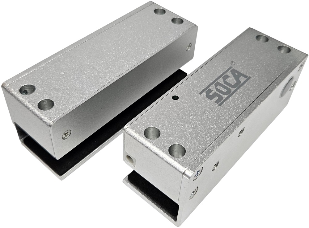 Soca SL-137U замок электромеханический с ригелем диаметром 12.7 мм. Накладной соленоидный электромеханический замок для стеклянных дверей толщина стекла 9-12 мм. Имеет встроенный микроконтроллер, позволяющий снижать силу тока до 210 мА, спустя 6 секунд после полного закрытия двери. Это позволяет уменьшить нагревание корпуса замка и потребление электроэнергии. Можно установить задержку на закрытие замка от 0 до 3 секунд после получения сигнала с кнопки или панели вызова. Предназначен для внутреннего использования. Имеет датчик положения двери НО и НЗ. Механизм электромеханического замка рассчитан на срабатывание до 500 000 раз.